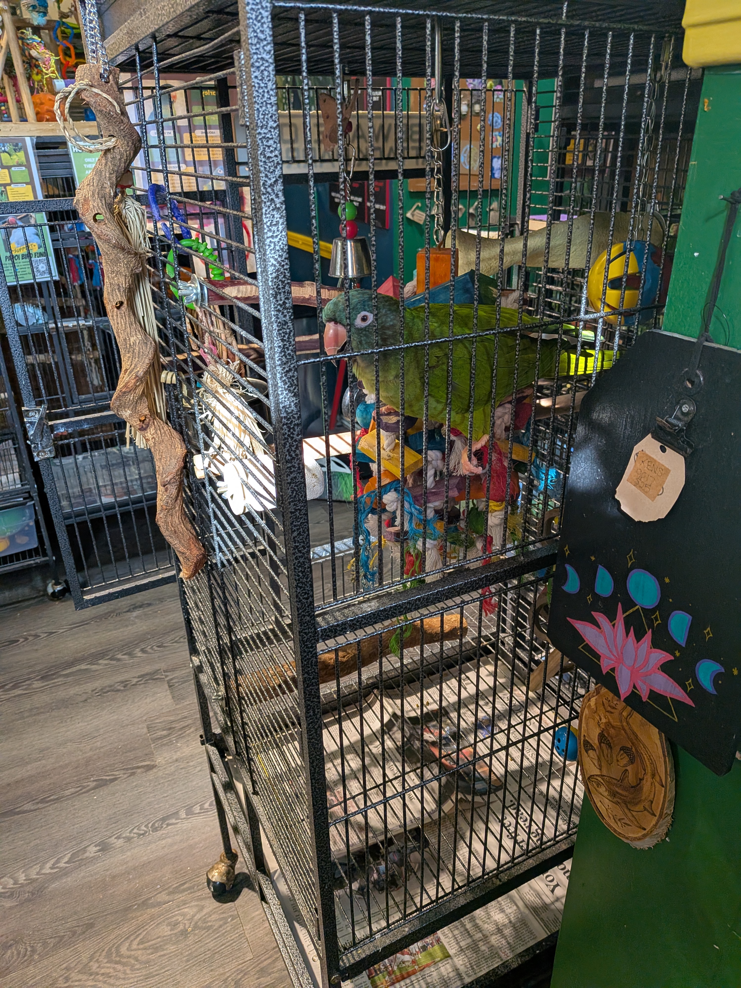 There were these free roaming parrots, most in their (opened) cages but a few hanging out on shelfs and the like. I occassionally forget how loud they can, much calmer than my puppies though. I didn't really know what to get, I was looking for something small and easy to put in a bag to take home without a car. But I did know that I needed a new pot for my Golden Pothos as she has long broken free from containment (her roots were long past the drainage holes).